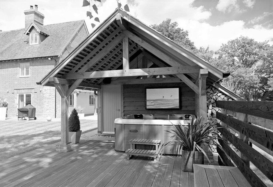 An existing cottage in need of refurbishment, carefully linked to a redundant outbuilding and accompanied by a new garage and garden room.